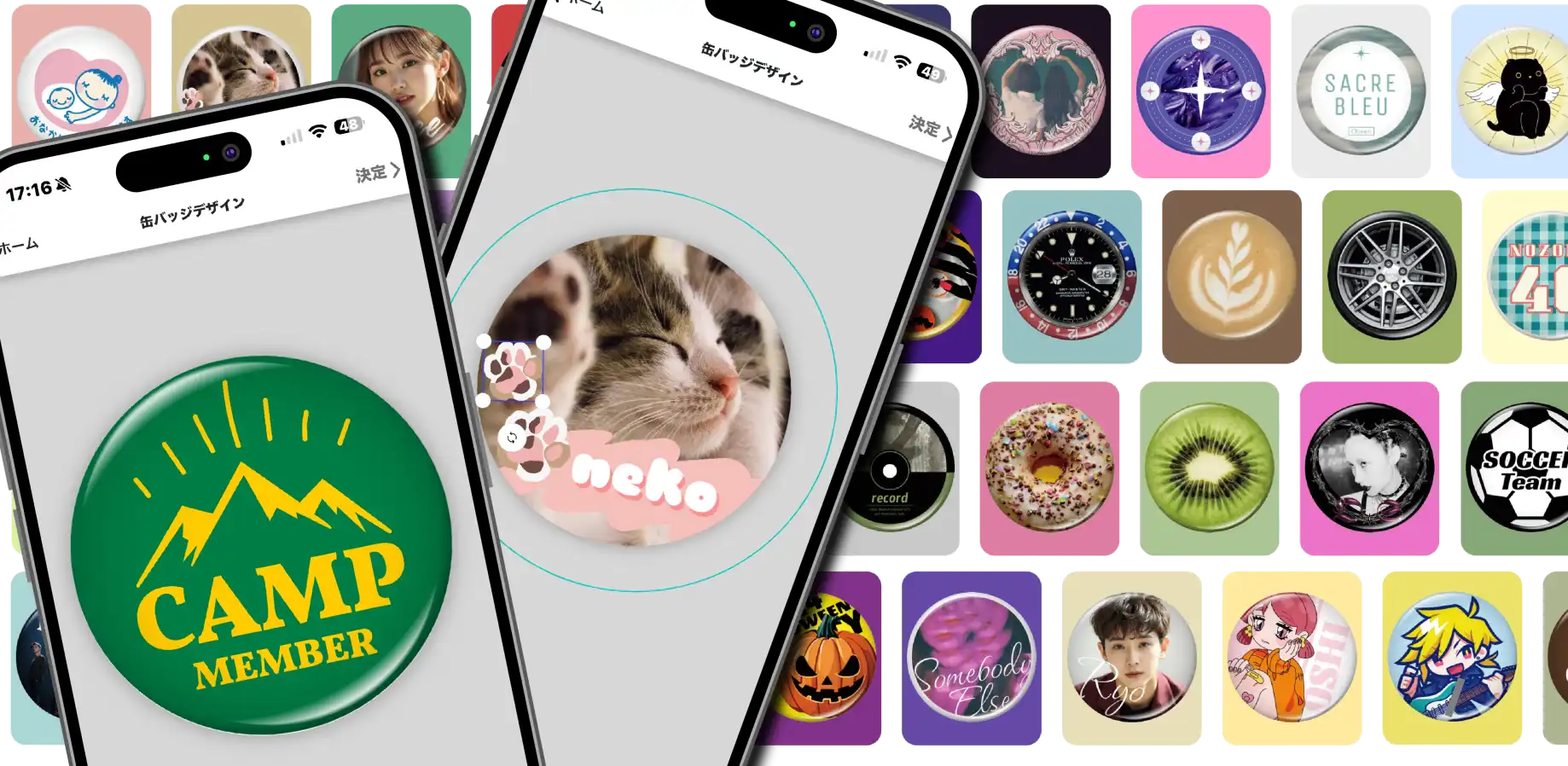 スマホアプリで作成するオリジナルデザインの缶バッジをご紹介します。